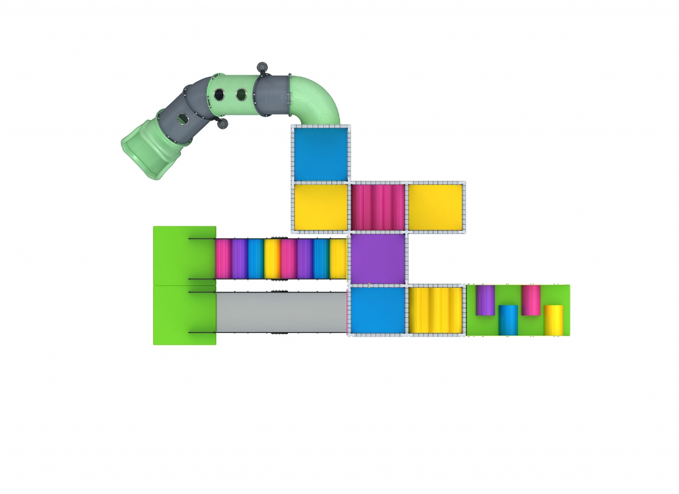 Piscina cu bile adaugă un element clasic de joacă, oferind o zonă de relaxare și distracție sigură, în timp ce trambulina contribuie la dezvoltarea echilibrului și forței musculare. Jocurile interactive integrate sunt o oportunitate excelentă pentru socializare și interacțiune între copii, făcând acest ansamblu ideal pentru grupuri mai mari.