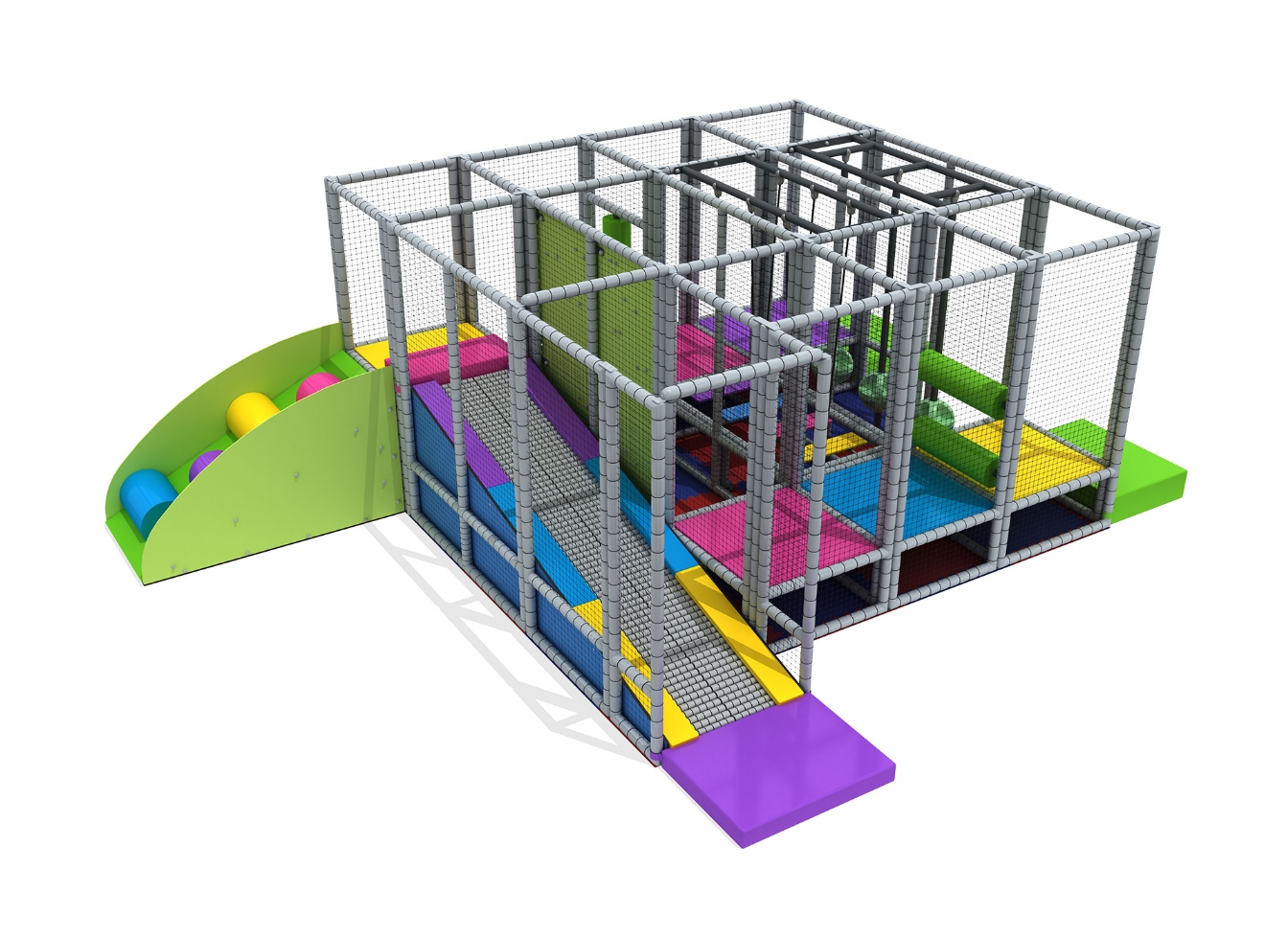 Trambulina de interior pentru locul de joacă cu tobogane, scară, jocuri interactive și piscină cu bile - MSP-011 este o soluție ideală pentru crearea unui spațiu de joacă complet și interactiv în interior. Această trambulină multifuncțională este special concepută pentru a oferi copiilor o varietate de activități, combinând distracția și dezvoltarea abilităților motorii într-un singur produs.
