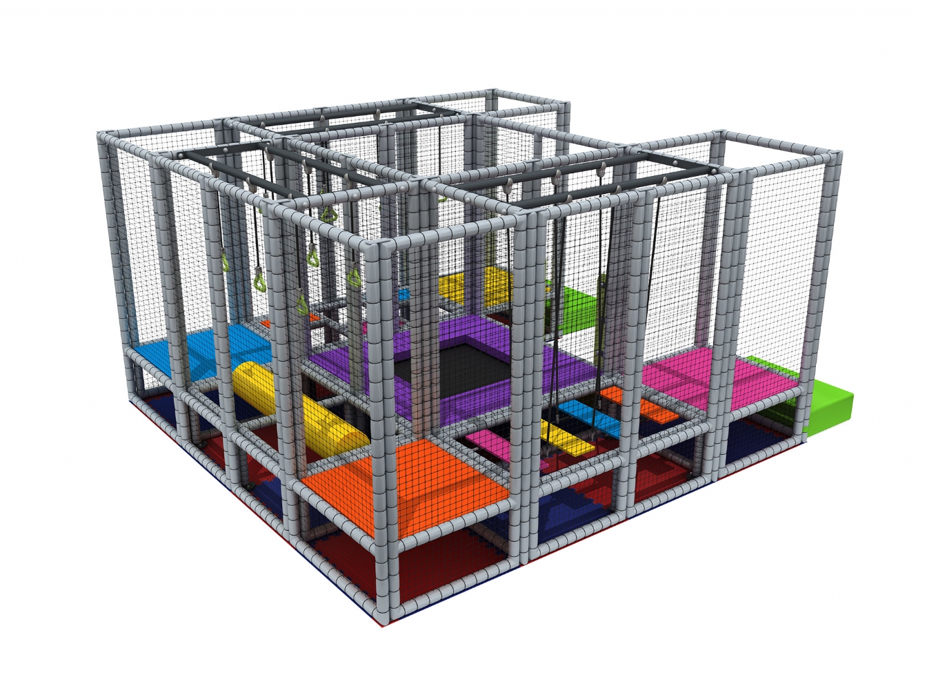 Trambulina de interior pentru locul de joacă cu tobogane, scară, jocuri interactive și piscină cu bile - MSP-011 este o soluție ideală pentru crearea unui spațiu de joacă complet și interactiv în interior. Această trambulină multifuncțională este special concepută pentru a oferi copiilor o varietate de activități, combinând distracția și dezvoltarea abilităților motorii într-un singur produs.