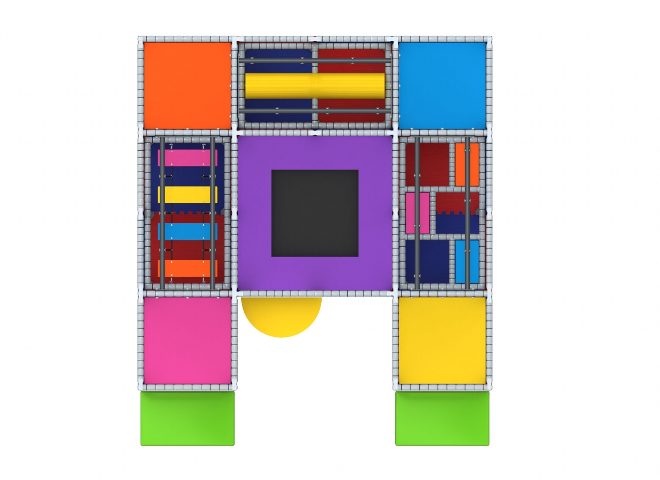 Piscina cu bile adaugă un element clasic de joacă, oferind o zonă de relaxare și distracție sigură, în timp ce trambulina contribuie la dezvoltarea echilibrului și forței musculare. Jocurile interactive integrate sunt o oportunitate excelentă pentru socializare și interacțiune între copii, făcând acest ansamblu ideal pentru grupuri mai mari.