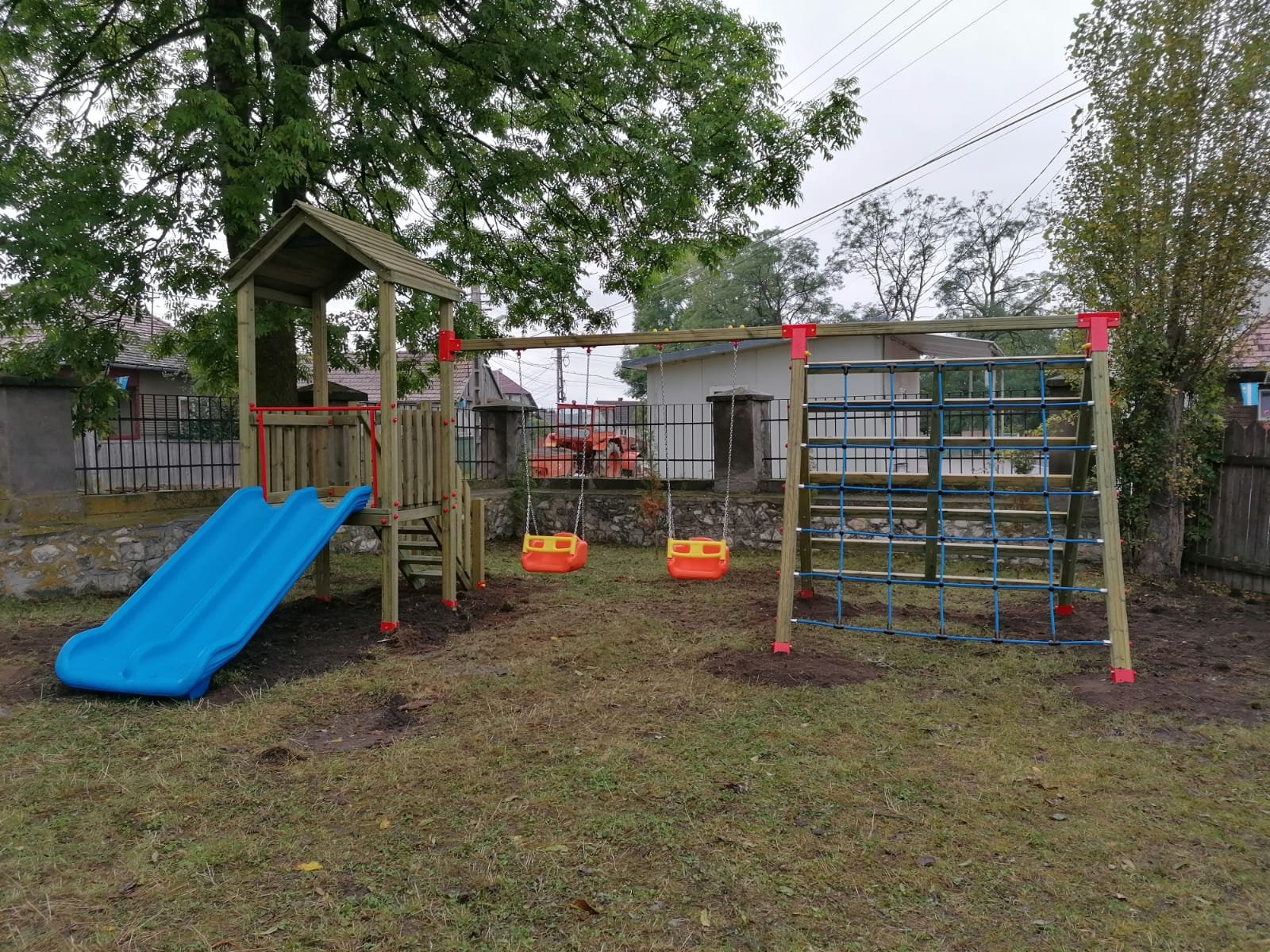 Echipamente Locuri de joaca de exterior pentru parc din lemn si plastic cu Scara 2 Leagane Tobogan si 2 Cataratoare modelul 39A din colectia Clasic