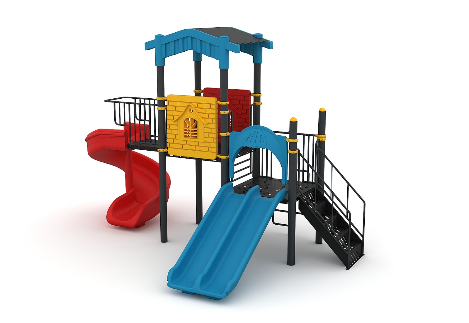 JUKO 246M Clasic Echipament loc de joaca exterior parc din metal cu Scară 2 Tobogane si Cataratoare