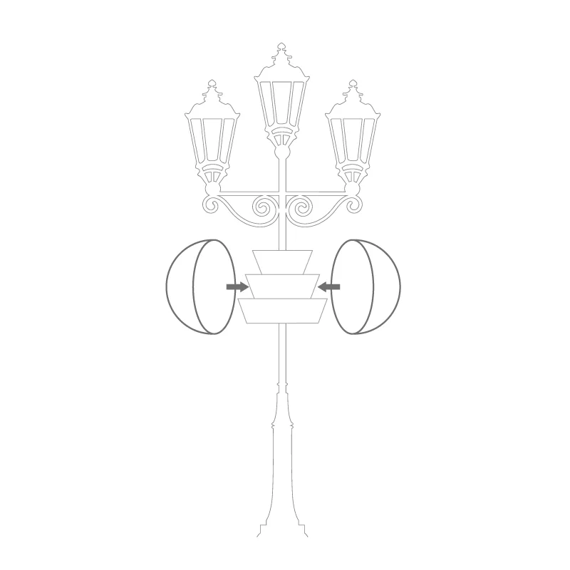 Designul simplu și sofisticat, cu două sfere ce se montează pe stâlp, transformă iluminatul stradal într-un punct de atracție vizuală. Sferic și modern, acest ornament adaugă o strălucire subtilă și festivă care completează peisajul de sărbătoare al orașelor, parcurilor sau piețelor.